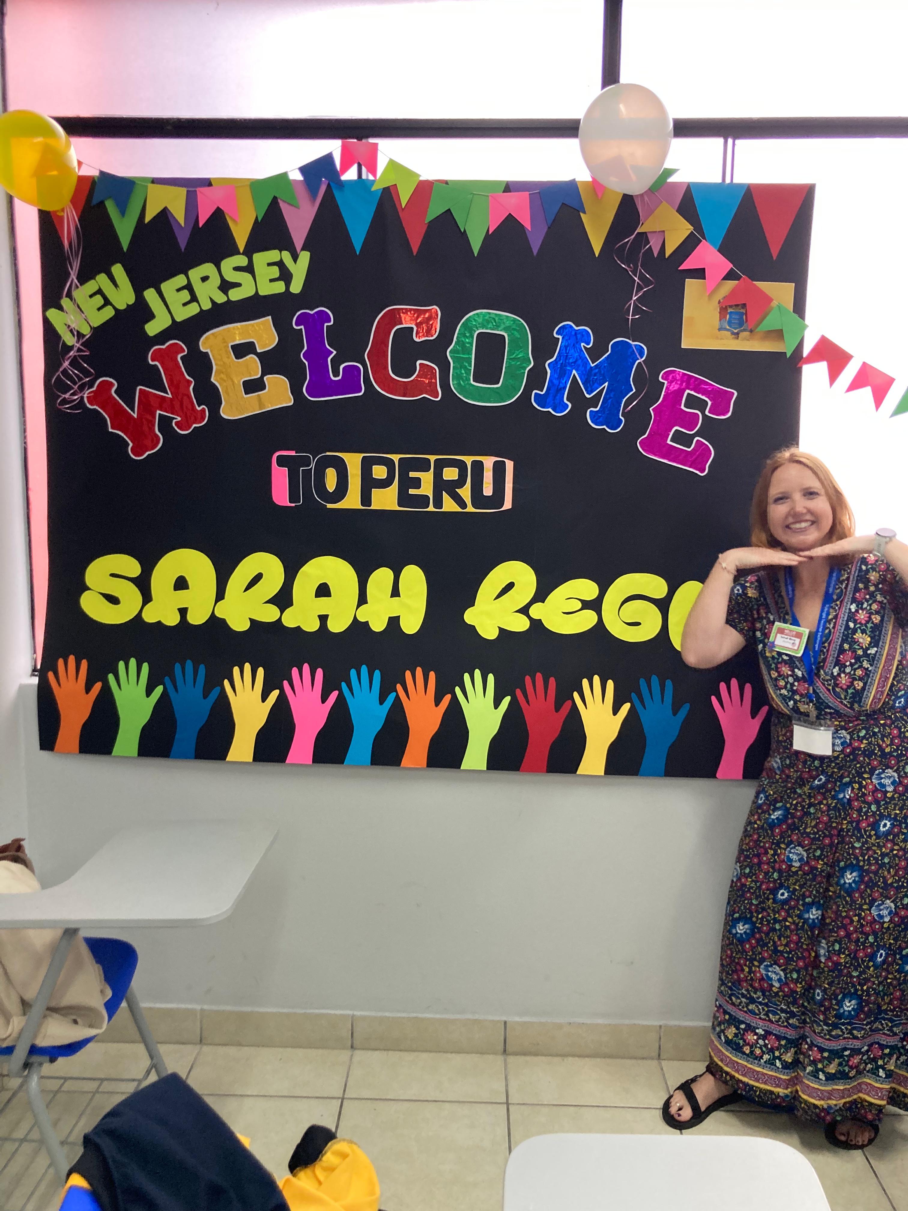 Our first full day back, we sat in the noisy Lima traffic and eventually found ourselves at UCV, a university in Lima that specializes in education. After an initial very exuberant ceremony filled with dancers, flowers, and glass plaques with our names on them we headed to some university classrooms. Just like most of the other places and schools in Peru, all of the classrooms were outdoor where as you passed through a hallways you could stick your hand out to the side and feel the rainfall. When we reached the top floor, I automatically knew I was in an elementary teacher program classroom where I was graciously greeted with balloons and flags. Each of us individually received our own poster that was handmade with bright colors, flags, and everything teaching. They even put the New Jersey flag on my poster. It was truly the warmest welcome.
